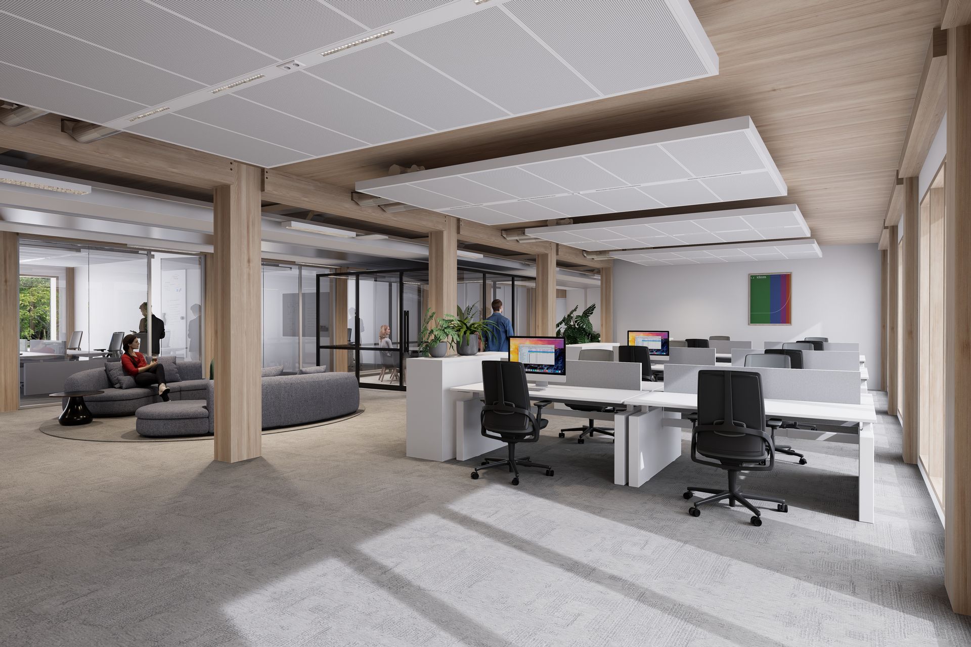 To create a pleasant working environment that meets the needs of a new generation of organizations, numerous special features are included. These include an atrium with a loft, glass boardrooms, a stage, drinks bar, pantries, two entrances per floor, an elevator, and multifunctional spaces in each wing and more.